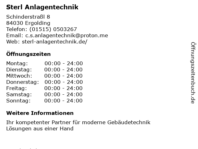 | Öffnungszeiten Sterl Anlagentechnik in Ergolding anzeigen | |