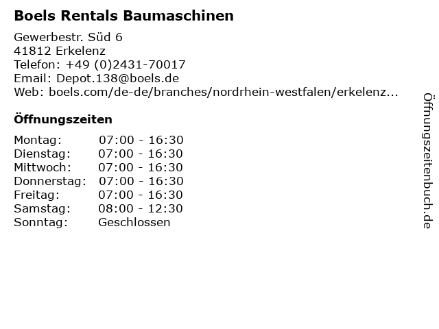 | Öffnungszeiten Boels Rentals Baumaschinen in Erkelenz anzeigen | |