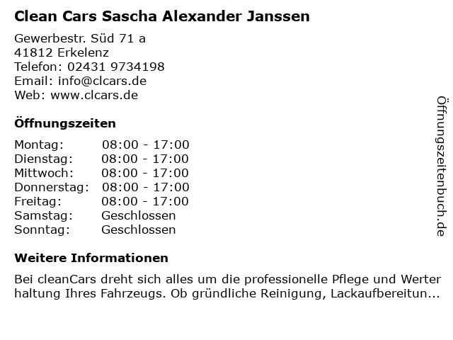 Branchen & Suchbegriffe zu Clean Cars Sascha Alexander Janssen:alexander, cars, clean, janssen, sascha |
