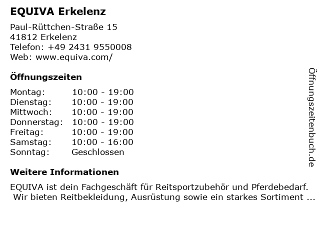 | Öffnungszeiten EQUIVA Erkelenz in Erkelenz anzeigen | |