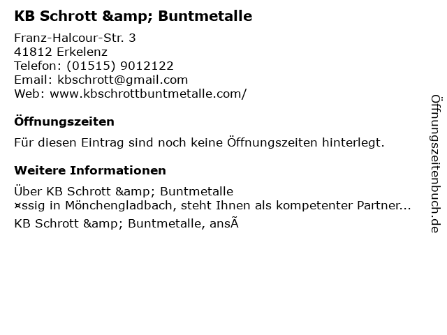 | Öffnungszeiten KB Schrott & Buntmetalle in Erkelenz anzeigen | |