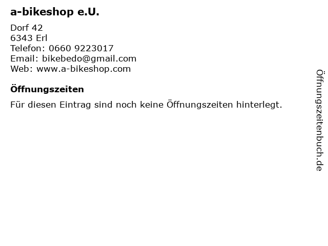 | Öffnungszeiten a-bikeshop e.U. in Erl anzeigen | |