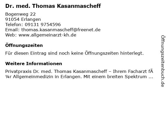 | Dr. med. Thomas Kasanmascheff anrufen | |