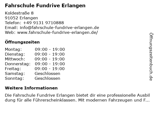 5 Nachhilfe und Fremdsprachenunterricht Nürnberg (Entfernung: 13,90 km) Schweppermannstraße 23, 90408 Nürnberg 6 Fahrschule Rudolf Patzer (Weisendorf) (Entfernung: 13,92 km) Vorstadtstraße 6, 91085 Erlangen-Höchstadt |