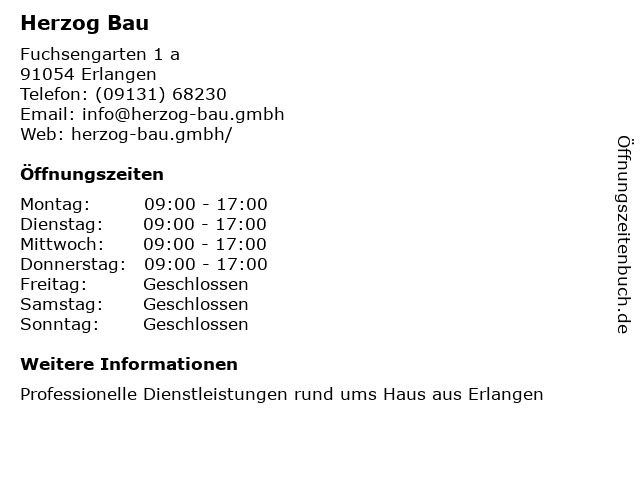 | Öffnungszeiten Herzog Bau in Erlangen anzeigen | |