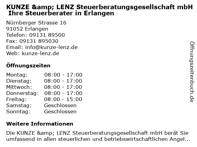 Branchen & Suchbegriffe zu KUNZE & LENZ Steuerberatungsgesellschaft mbH Ihre Steuerberater in Erlangen:buchhalter, ihre, kunze, lenz, mbh, steuerberater, steuerberatungsgesellschaft |