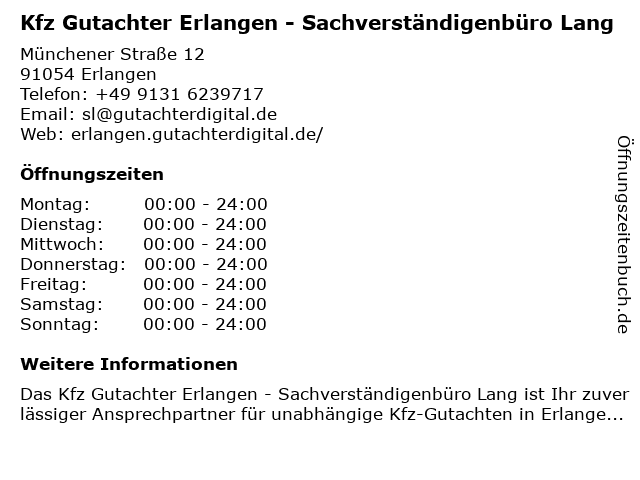2 Gutachter Innenausbau und Bauschäden, Philipp Müller (Entfernung: 1,67 km) Möhrendorfer Straße 30, 91056 Erlangen 3 Kfz-Sachverständigenbüro CleverCrash® – Dein Gutachter in Erlangen, Fürth & Nürnberg (Entfernung: 2,21 km) Schillerstr. 67a, 91054 Erlangen 6 |