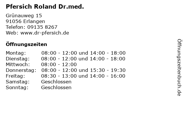 | Öffnungszeiten Pfersich Roland Dr.med. in Erlangen anzeigen | |