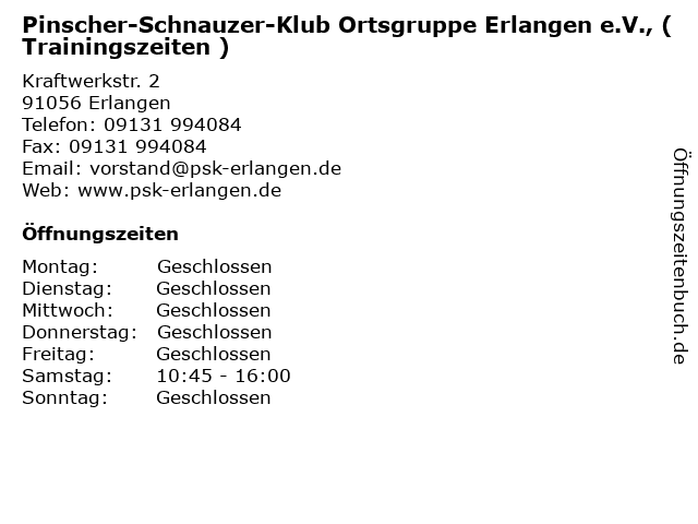 Branchen & Suchbegriffe zu Pinscher-Schnauzer-Klub Ortsgruppe Erlangen e.V., ( Trainingszeiten ):e.v., hundevereine, klub, ortsgruppe, pinscher, schnauzer, trainingszeiten |