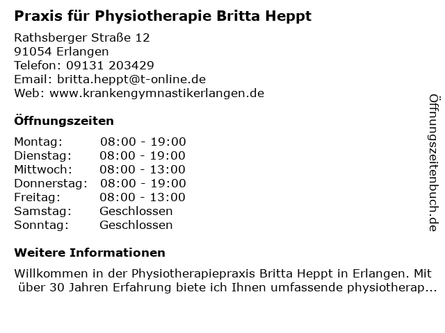 Branchen & Suchbegriffe zu Praxis für Physiotherapie Britta Heppt:britta, heppt, physiotherapie, praxis |