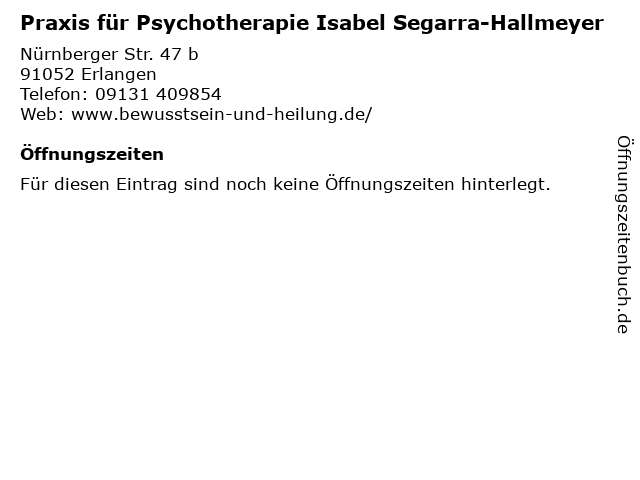 | Praxis für Psychotherapie Isabel Segarra-Hallmeyer anrufen | |