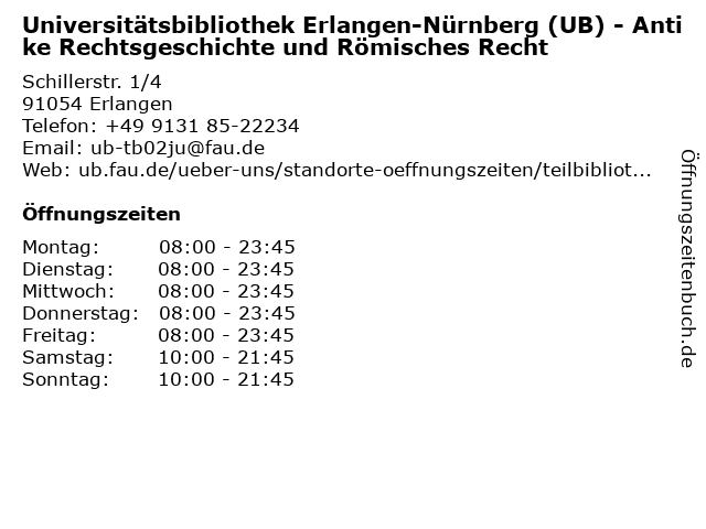 Branchen & Suchbegriffe zu Universitätsbibliothek Erlangen-Nürnberg (UB) - Antike Rechtsgeschichte und Römisches Recht:antike, bibliothek, buch, buchscanner, literaturen, recht, rechtsgeschichte, römisches, sprachen, ub, universitätsbibliothek |