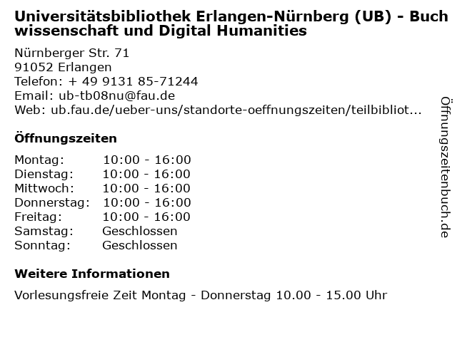 Branchen & Suchbegriffe zu Universitätsbibliothek Erlangen-Nürnberg (UB) - Buchwissenschaft und Digital Humanities:bibliothek, buch, buchscanner, buchwissenschaft, digital, humanities, literaturen, sprachen, ub, universitätsbibliothek |