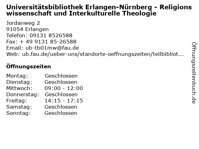 Branchen & Suchbegriffe zu Universitätsbibliothek Erlangen-Nürnberg - Religionswissenschaft und Interkulturelle Theologie:interkulturelle, missions, opac, religionswissenschaft, teilbibliothek, theologie, unibib erlangen, universität erlangen-nürnberg, universitätbibliothek, universitätsbibliothek, zweigbibliothek |