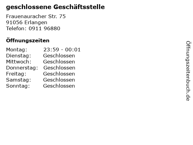 | Öffnungszeiten geschlossene Geschäftsstelle in Erlangen anzeigen | |