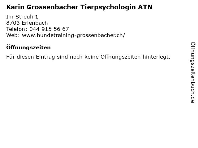 | Karin Grossenbacher Tierpsychologin ATN anrufen | |
