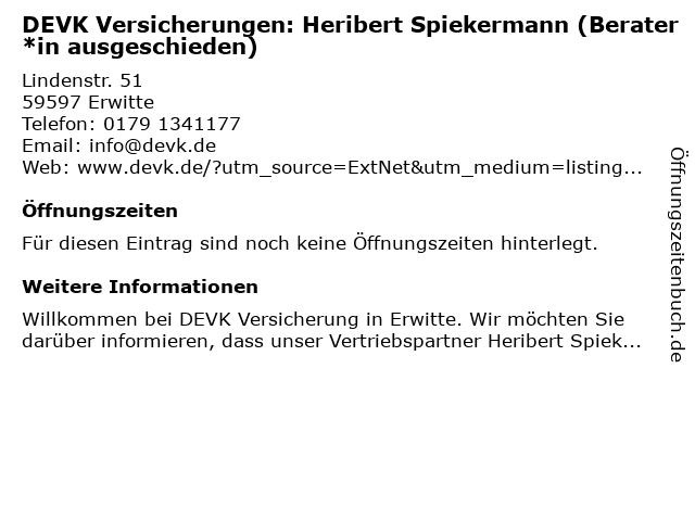| DEVK Versicherungen: Heribert Spiekermann (Berater*in ausgeschieden) anrufen | |