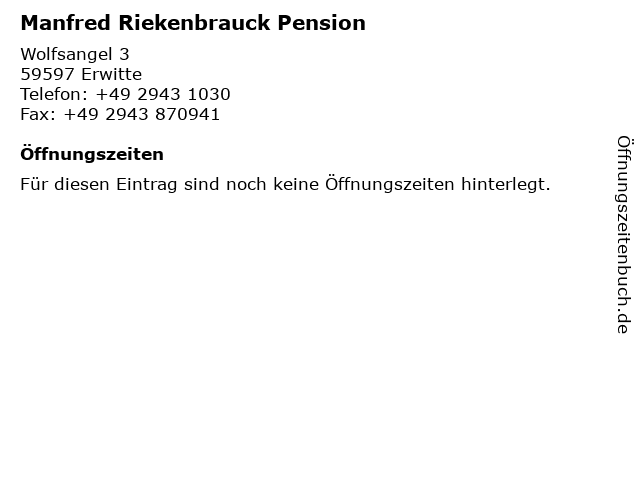 | Öffnungszeiten Manfred Riekenbrauck Pension in Erwitte anzeigen | |