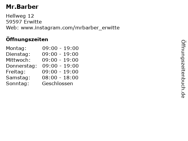 | Öffnungszeiten Mr.Barber in Erwitte anzeigen | |
