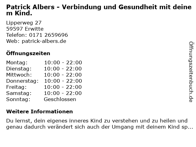 Branchen & Suchbegriffe zu Patrick Albers - Verbindung und Gesundheit mit deinem Kind.:albers, deinem, gesundheit, kind., mit, patrick, verbindung |