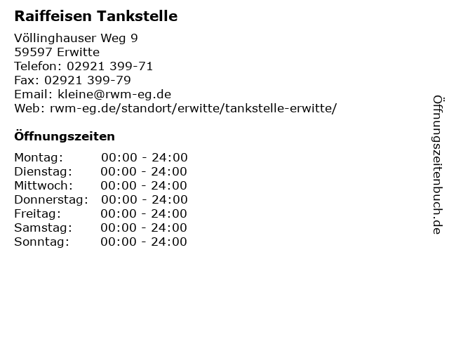 | Öffnungszeiten Raiffeisen Tankstelle in Erwitte anzeigen | |