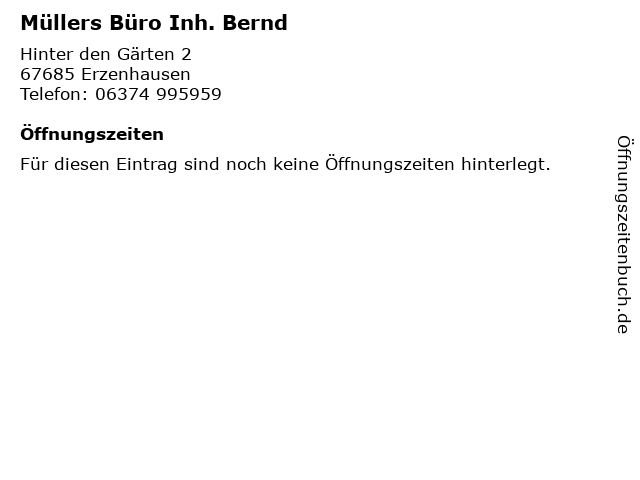 | Öffnungszeiten Müllers Büro Inh. Bernd in Erzenhausen anzeigen | |