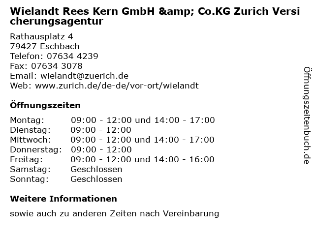 Branchen & Suchbegriffe zu Wielandt Rees Kern GmbH & Co.KG Zurich Versicherungsagentur:agence, agence d'assurance, agent, agentur, agenzia, ansprechpartner, assicurazione, assurance, berater, beratung, büro, co.kg, dienstleistung, filialdirektion, finanzen, generalagentur, kern, rees, versicherungsagentur, wielandt, zurich |