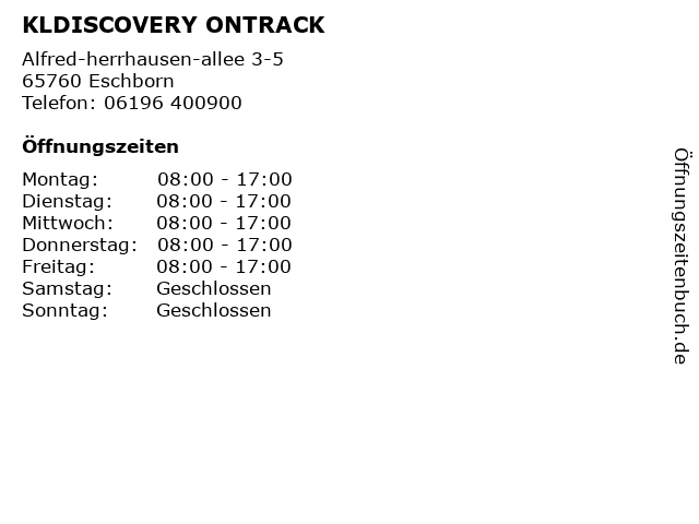 | Öffnungszeiten KLDISCOVERY ONTRACK in Eschborn anzeigen | |
