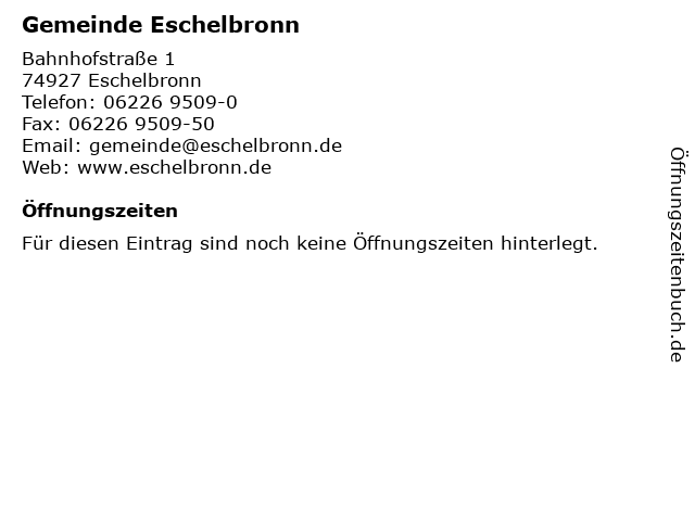 | Öffnungszeiten Gemeinde Eschelbronn in Eschelbronn anzeigen | |