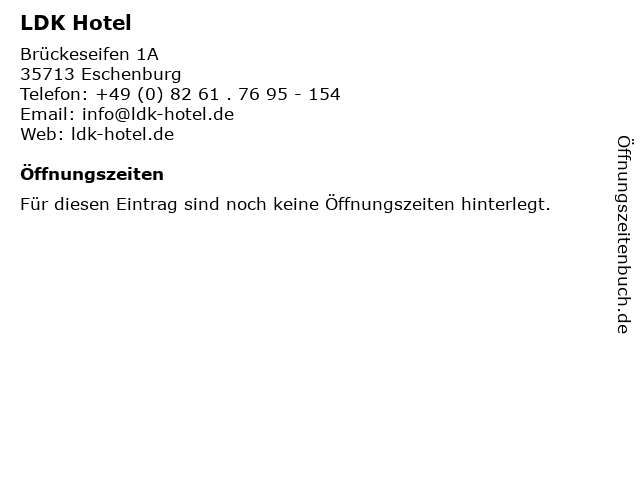 | Öffnungszeiten LDK Hotel in Eschenburg anzeigen | |
