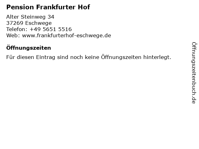 | Öffnungszeiten Pension Frankfurter Hof in Eschwege anzeigen | |