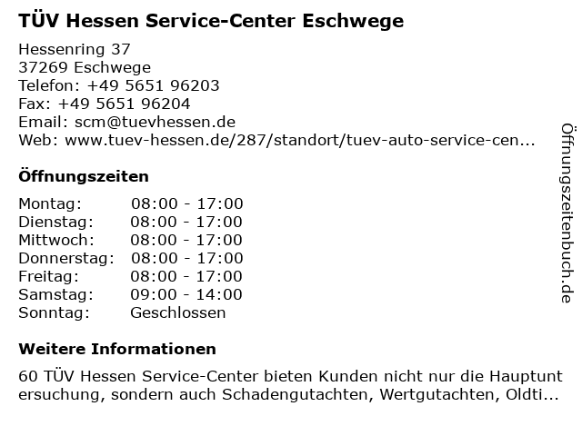 1 Lotto Hessen Annahmestelle - Deutsche Post Filiale (Entfernung: 0,40 km) Heubergstraße 2, 37269 Eschwege 3 Hessen Mobil Straßen- und Verkehrsmanagement Eschwege (Entfernung: 1,09 km) Kurt-Holzapfel-Str. 37, 37269 Eschwege 6 TÜV Nord Prüfstelle Eschwege KFZ Sachverständigenbüro Frank Buchenau (Entfernung: 2,12 km) Bahnhofstraße 13a, 37269 Eschwege |