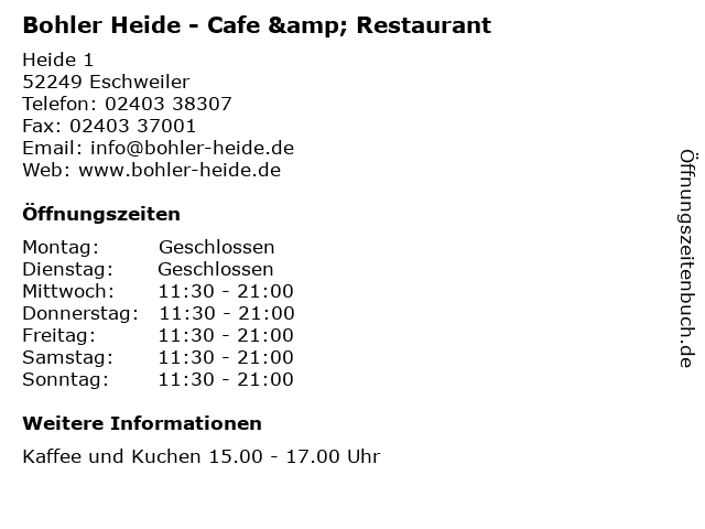Branchen & Suchbegriffe zu Bohler Heide - Cafe & Restaurant:bohler, cafe, heide, kaffee, kuchen, restaurant, schnitzel |