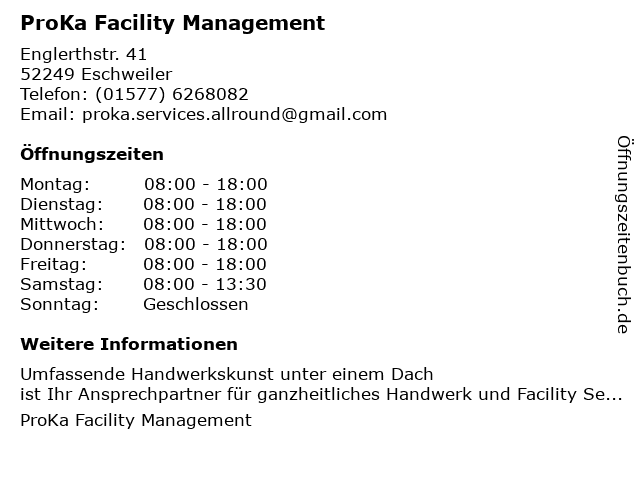 Branchen & Suchbegriffe zu ProKa Facility Management:abgehängte decken, acryl-blüten-designs, acrylarbeiten, acrylbearbeitungen, acrylbeschichtungen, acrylbilder, acryldesign-schulungen, acrylfarben, acrylharz-beschichtungen, acrylreparaturen, acrylsysteme, acryltechnik, acrylverfahren, akustik für büroräume, akustikdecken, akustikputzbeschichtung, allroundservice, altbauinstallationen, altbaumodernisierung, altbausanierung, altbautenschutz, anlagenpflege, anstreicher, anstreicherarbeiten, anstricharbeiten, anstriche, antennenanlagen, antennensysteme, arztbegleitungen, ausbeulservice, ausgleichsmanagement, ausstattungsmaler, autolackierereien, automatiktüren, außenanlagen, außenanlagen aus holz, außenanlagen für gewerbe, außenanlagenbau, außenanlagengestaltung, außenanlagenpflege, außenanstriche, außenbeschichtungen, außenputz, außenreinigungen, bachlaufgestaltung, bachläufe, balkongärten, balkonkastenbepflanzung, bambuspflanzen, bangkirai-terrassendielen, bankettabtrag, bankettfräse, bankettherstellung, bankettregulierung, barrierefreie elektroinstallationen, baumabtragungen, baumarbeiten, baumbehandlung, baumfällarbeiten, baumfällen, baumfällungen, baumgutachten, baumkontrolle, baumpflege, baumsanierung, baumspezialfällungen, baumwollputz, baustromtechnik, baustromversorgung, bauwerkssicherung, beetgestaltung, befestigungen, befestigungslösungen, begrünungen, beleuchtung, beleuchtungstechnik, bepflanzung von außenanlagen, bepflanzung von grünanlagen, bepflanzung von gärten, bepflanzungen, beschichtungssysteme, beschichtungstechnik, bewässerungen, bewässerungssysteme, bildmalerei, biofarbanstriche, biogärtnerei, biokompost, biotop-teichanlagenbau, blitzschutzanlagen, blumen, blumendekorationen, bodengrund, bodenleger, bodenlegerarbeiten, bodenmarkierungen, bodenverdichtungen, brandmeldeanlagen, brandschutz, büroauflösungen, carportaufbau, carportbau, carports, chemische entlackungen, conciergeservice, containerdienste, dachausbau, dachbegrünung, dachbepflanzungen, dachbodenisolation, dachgärten, dachlackierungen, dachneubau, dachschnitt, dachumbauten, datenkabelverlegung, datennetze, datennetzwerke, datentechnik, datenverkabelung, deckenanstriche, deckenbekleidungen, deckenmalerei, deckenrenovierungen, deckensysteme, deckenvertäfelungen, dekorationsmalerei, dekorative farbgestaltung, dekorative malerei, dekorative nasslackierung, dekorative wandbeschichtung, dekorative wandgestaltung, demarkierungsarbeiten, drainagenbau, dämmtechnik, edelputze, edelstahlreinigung, edv-installation, eib-anlagen, eib-bus, eib-gebäudesysteme, eib-programmierung, eib-systeme, elektrik-sanierung, elektriker, elektrikerarbeiten, elektrische gebäudeinstallationen, elektro-ersatzteilservice, elektro-kundendienst, elektro-montagen, elektroanlagen, elektroarbeiten, elektrodemontagen, elektrodienstleistungen, elektroersatzteile, elektroinstallationen, elektroinstallationen in krankenhäusern, elektromaschinen-service, elektromeister, elektroniker, elektroniksanierungen, elektronische prüfung, elektroprüfung, elektroreparaturen, elektrorevision, elektrosanierungen, elektroservice, elektrowartung, endabnahmen, energie-verteilanlagen, energiesparsysteme, energietechnik, entlackungen, entschichtung, entwässerungsarbeiten, erdungsanlagen, erosionsschutz, extensive begrünung, fachwerkbau, facility, facility consulting, fallschutzbeläge, farbberatung, farbgestaltung, farbkonzepte, farblaserdruck, farbtechnik, fassadenanstriche, fassadenarbeiten, fassadenbegrünung, fassadenbeschichtung, fassadenbeschriftungen, fassadenbilder, fassadengestaltungen, fassadenmalerei, fassadenrenovierung, fassadensanierungen, fassadenverkleidungen, fassadenvollwärmeschutz, feng-shui-gärten, fenster für gipskartonwände, fenster für rigipswände, fensteranstricharbeiten, fensteranstriche, fensterrenovierungen, fertigrasen, fischteiche, fleckspachtelung, fliesenarbeiten, floristik, fluchtwegmarkierungen, flutlichtanlagen, flüssigtapeten, folienteiche, friedwald- und baumbestattung, frostschutzhüllen, futtersilobeschichtungen, fußbodenarbeiten, fußbodentrockenestrich, fällarbeiten, gabionen, gabionenkörbe, galabau, garagenbegrünungen, gartenanlagen, gartenarbeiten, gartenarbeiten aller art, gartenbau, gartenbauplaner, gartenbepflanzung, gartenbrunnen, gartendienste, gartengestalter, gartengestaltung, gartengrundstückspflege, gartenhütten, gartenjahrespflege, gartenmodernisierung, gartenneuanlagen, gartenpflege, gartenpflegearbeiten, gartenplanung, gartenpläne, gartenrenovierung, gartenrestaurierung, gartensanierungen, gartenschnitte, gartenteichanlagen, gartenteichbau, gartenteiche, gartenterrasse, gartenumgestaltung, gartenwirtschaft, gebäudeautomation, gebäudeinstallationen, gebäudesystemtechnik, gebäudetechnik, gebäudethermografie, gebäudeverwaltung, gehegezäune, gehölzpflege, gehölzschnitt, geomantie, gestaltung von außenanlagen, gewerbe, gewerblicher gartenbau, gewässersanierung, gipsdecken, gipserarbeiten, golfplatzpflege, großanstriche, grundstückssanierungen, grünanlagen, grünanlagenpflege, grünflächenbearbeitung, grünflächenconsulting, grünflächenmanagement, grünflächenpflege, grünpflege, grünschnitt, gärtnermeister, hallenmarkierungen, handputze, handwerkerservice, handwerkliche dienste, handwerkservice, hangbefestigungen, hangsicherung, hausdienste, hausdämmung, hausentrümpelungen, hausmeistera |