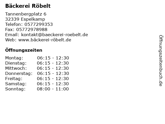 | Öffnungszeiten Bäckerei Röbelt in Espelkamp anzeigen | |