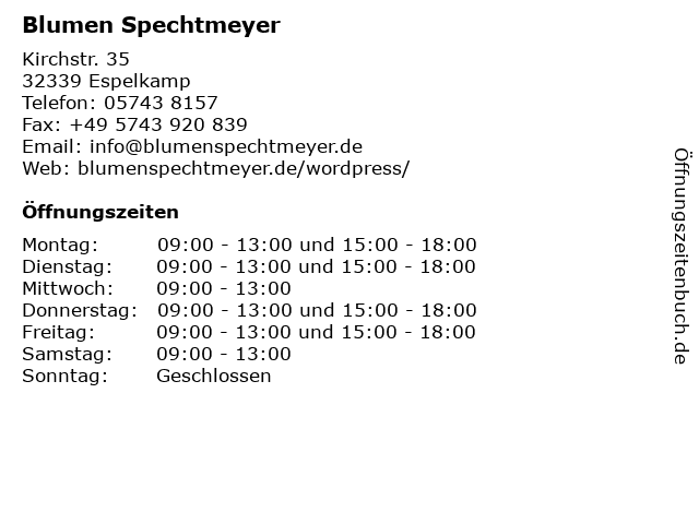 | Öffnungszeiten Blumen Spechtmeyer in Espelkamp anzeigen | |