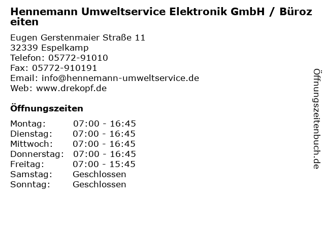 Branchen & Suchbegriffe zu Hennemann Umweltservice Elektronik GmbH / Bürozeiten:bürozeiten, elektronik, elektroschrott, entsorgungen, hennemann, recyclinghof, schrotthof, umweltservice |