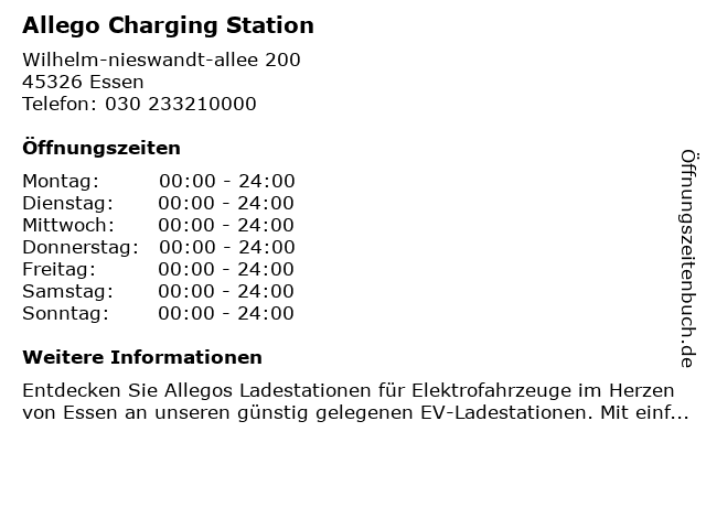 Öffnungszeiten Allego Charging Station in Essen anzeigen