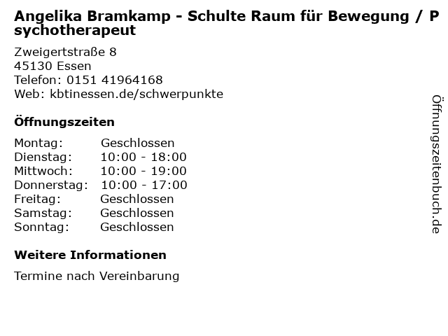 Branchen & Suchbegriffe zu Angelika Bramkamp - Schulte Raum für Bewegung / Psychotherapeut:angelika, bewegung, bramkamp, körpersinn, psychotherapeut, raum, schulte, seminare, therapie, trauma |