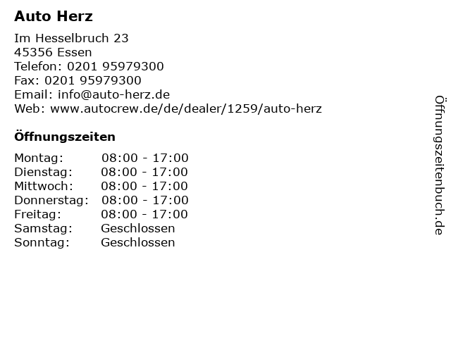 | Öffnungszeiten Auto Herz in Essen anzeigen | |