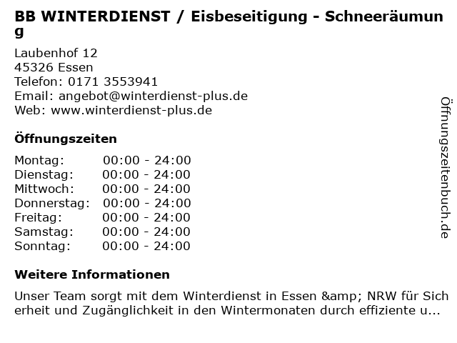 Branchen & Suchbegriffe zu BB WINTERDIENST / Eisbeseitigung - Schneeräumung:bb, eisbeseitigung, schneeräumung, winterdienst |