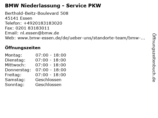 2 BMW Niederlassung Essen BMW Gebrauchtwagenzentrum (Entfernung: 0,45 km) Berthold-Beitz-Boulevard 522, 45141 Essen 3 Aufzugswerke Schmitt + Sohn GmbH & Co. KG - Niederlassung (Entfernung: 0,51 km) Bamlerstraße 5a, 45141 Essen 4 Jockel Brandschutz Technik-Service GmbH Niederlassung Essen Brandschutztechnik (Entfernung: 0,75 km) Gießereiweg 10, 45141 Essen 6 FUTURA Fundamentsysteme GmbH (Niederlassung Essen) (Entfernung: 0,81 km) Zur Schmiede 4b, 45141 Essen |
