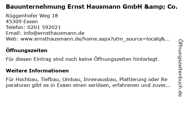 | Bauunternehmung Ernst Hausmann GmbH & Co. anrufen | |
