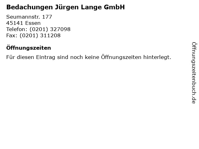 | Öffnungszeiten Bedachungen Jürgen Lange GmbH in Essen anzeigen | |