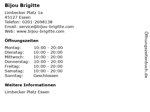 | Öffnungszeiten Bijou Brigitte in Essen anzeigen | |