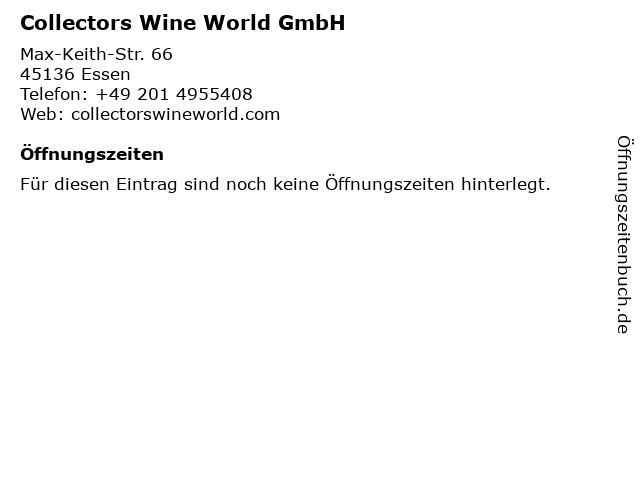 | Öffnungszeiten Collectors Wine World GmbH in Essen anzeigen | |