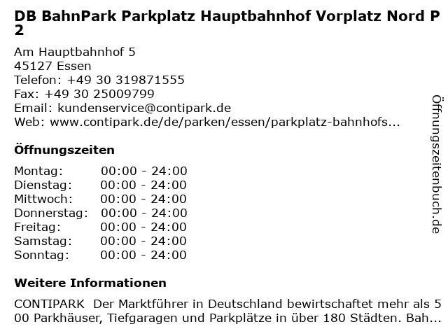 Branchen & Suchbegriffe zu DB BahnPark Parkplatz Hauptbahnhof Vorplatz Nord P2:24/7, bahnpark, bequem, db, essen, günstig, hauptbahnhof, nord, p2, parken, parken essen, parken hauptbahnhof vorplatz nord p2, parkplatz, parkplatz essen, vorplatz, zentral |