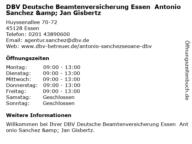 Branchen & Suchbegriffe zu DBV Deutsche Beamtenversicherung Essen Antonio Sanchez & Jan Gisbertz:altersvorsorge, antonio, beamtenversicherung, berufshaftpflichtversicherung, berufsunfähigkeitsversicherung, dbv, deutsche, essen, gebäude- und hausratsversicherung, gisbertz, jan, lebensversicherung, sanchez, unternehmen für versicherungsfachfragen, zahnmedizinische versicherung |