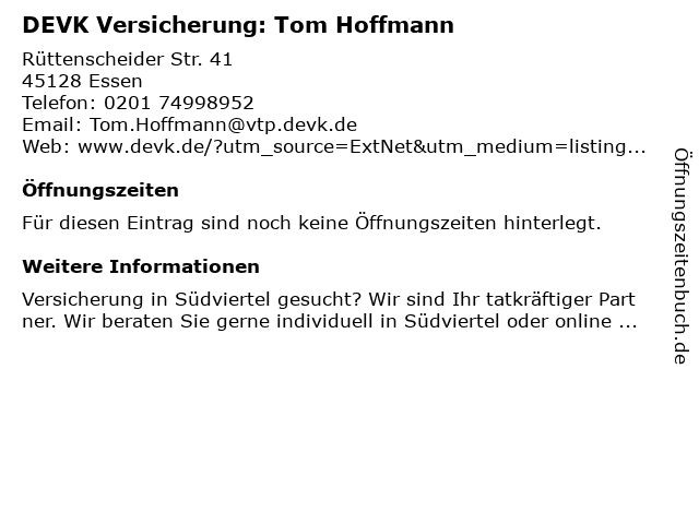 | DEVK Versicherung: Tom Hoffmann anrufen | |