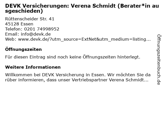 | DEVK Versicherungen: Verena Schmidt (Berater*in ausgeschieden) anrufen | |
